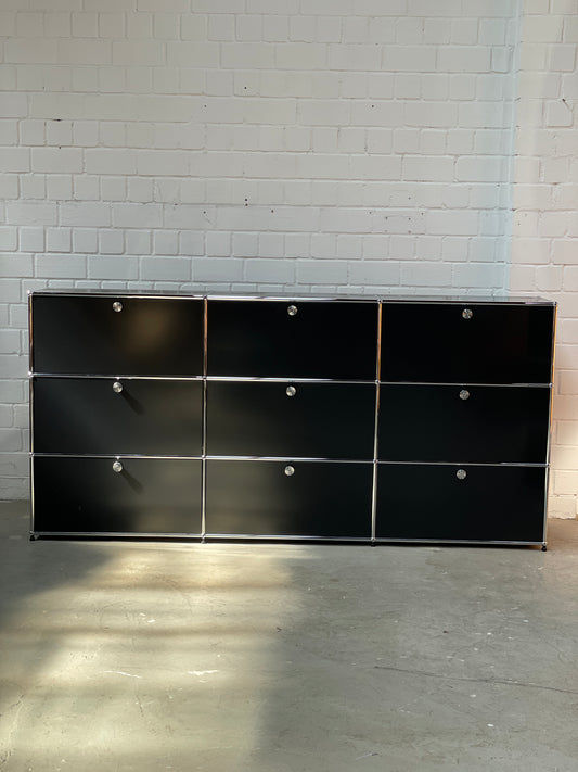 USM-Haller Rollcontainer | 3 Schubfächer inkl. Schloss & Schlüssel | RAL9011 | Graphitschwarz