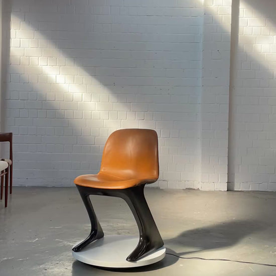 Z-Stuhl oder Känguru-Stuhl in einem dunklen Braunton und ein Cognacfarbenes Leder